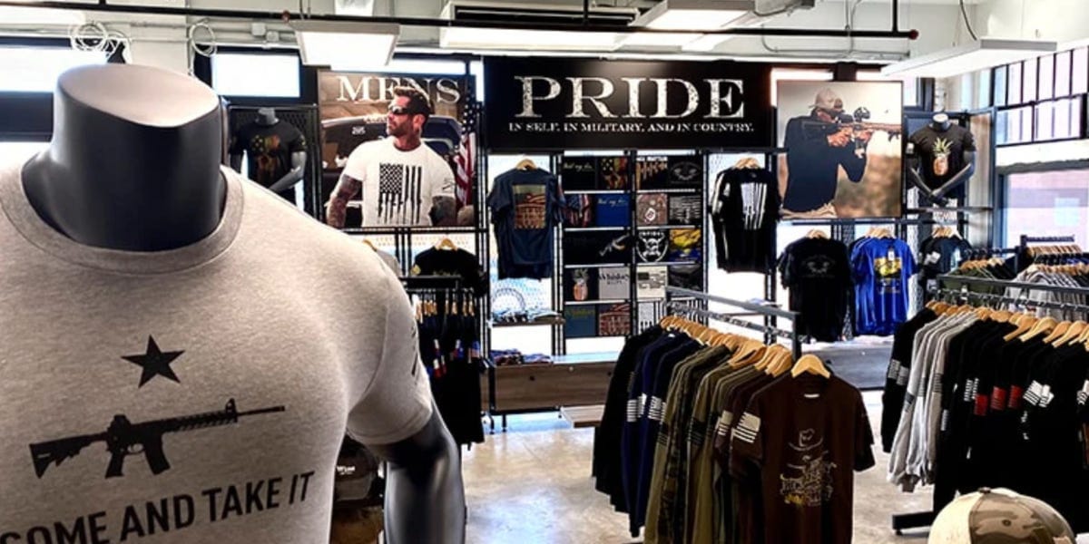 The new shirts, which retail for $24.99 plus shipping, handling, and a quiet erosion of principles, feature illustrations of men kneeling and presenting their firearms beneath the phrase “Shall Be Infringed.” The apparel marks a departure from Penetrating Lead’s standard designs, which typically include no fewer than 37 American flags, rattlesnakes, or slogans such as “COMMUNISM IS FOR PUSSIES” emblazoned across the back. Other popular designs read “I didn’t go to Harvard, I went to IRAQ,” as if there were any doubt the wearer didn't go to Harvard.